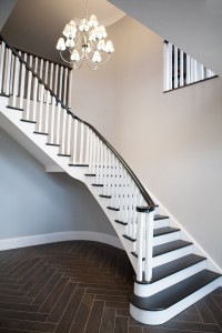 At McNally Joinery, we love our staircases and take great pride in crafting them. They are only limited by the customer’s imagination which can get very creative at times. This staircase was what we like to call the ‘chocolate staircase’. It has a beautiful dark stain, contrasted with a white colour, a fabulous gentle sweep and is perfectly complemented by a herringbone floor.