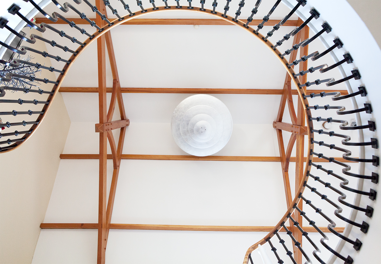 Ceiling with wooden frame - staircase iron baluster