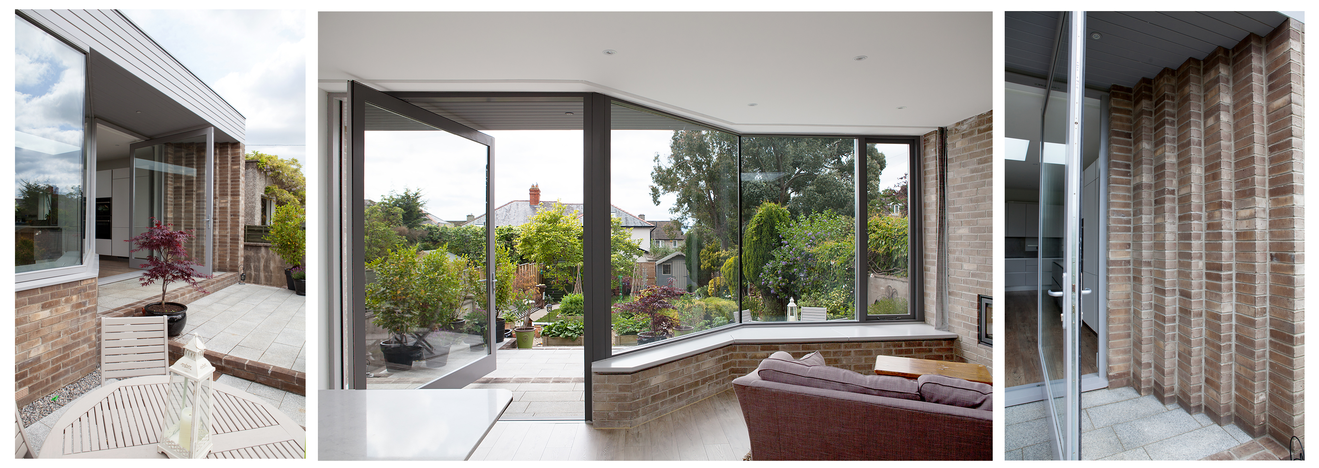Iroko Pivot Door | Double Glazed Glass | RAL 7004 Grey | Satin Chrome | Pivots on Concealed Pivot Hinge | Splayed Screen | Three Point Locking System | Corner to Corner Glass Joint Direct Glazed Window