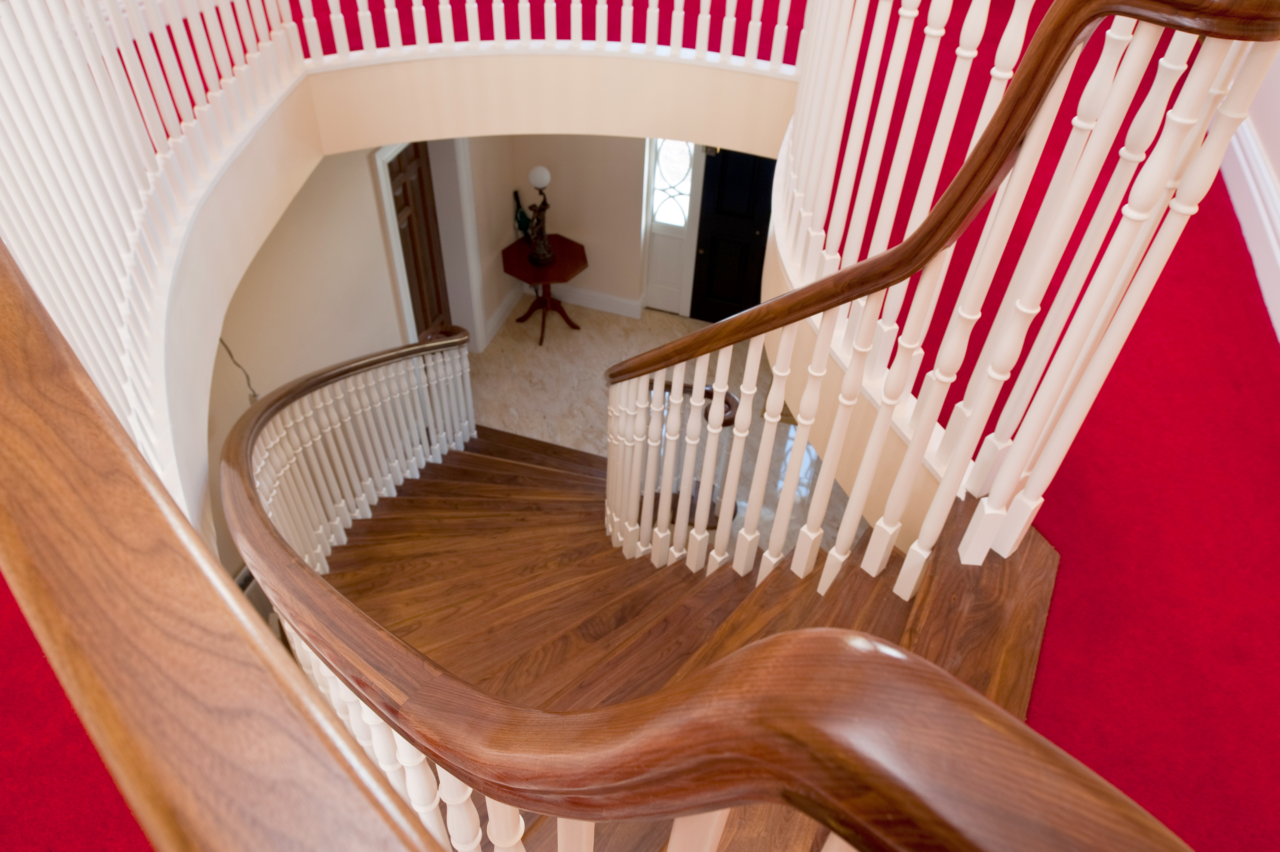 Curved staircase Walnut Treads and Handrail | Cream Risers, Balusters and Apron | Continuous Handrail | Photo by Kevin McFeely Like Loading...